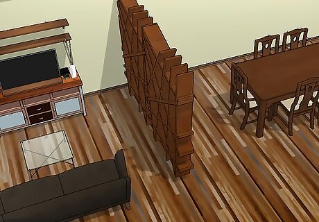 Divide your living room into multiple quadrants. The living room is often the largest area of a house, but many people use it exclusively as a family or TV room. To open up more space, try dividing your living room into multiple zones with their own unique designs. These quadrants can stand in for rooms that you don’t have enough space for, such as a dining room, playroom, or den. To partition the area with dividers, purchase large curtains, tides, or free-standing walls and arrange them inside your living room. To create quadrants without using dividers, arrange objects in the room based on their specific function.
