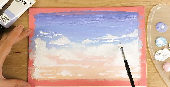 Take a clean flat brush. Lightly brush up for big clouds or, lightly brush side to side for small clouds. They will give off the puffy or blurry effect.