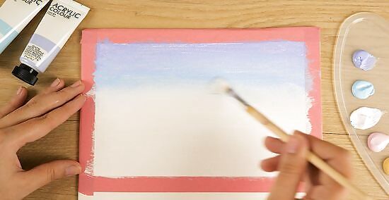Coat your brush with some paint. Move your brush from side to side, spreading the paint down about the middle of the canvas but no farther. Clean your brush and do the same thing but this time use white and start from the bottom to the middle. Doing this will help you prepare for the blending.