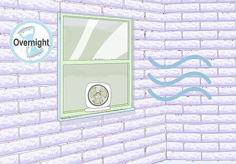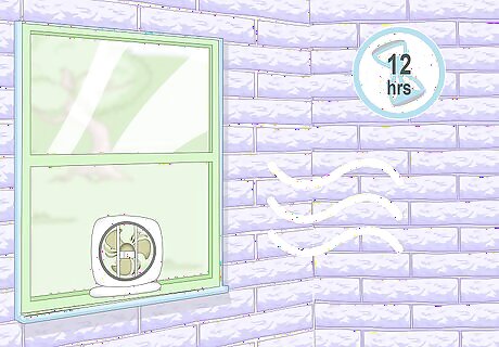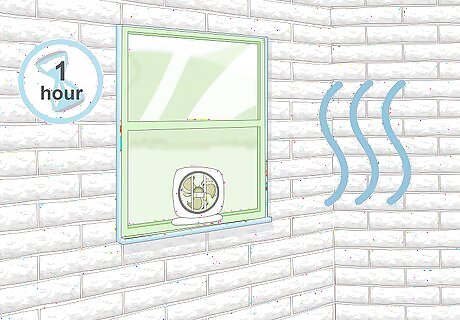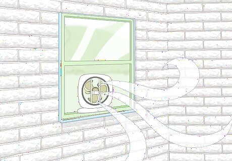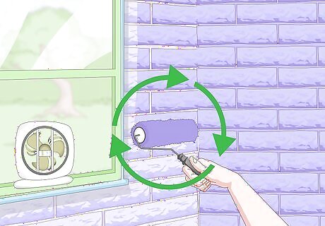 Make sure the area is well-ventilated. Paint gives off fumes that can be toxic if they’re inhaled, so make sure the area you are painting is well-ventilated to avoid exposure to them. If you’re working in a closed room, open any windows and use a fan to circulate fresh air into the room. If you’re working outside, you can use a fan to keep the air moving and keep the fumes away. A fan will also help the paint dry faster as well.