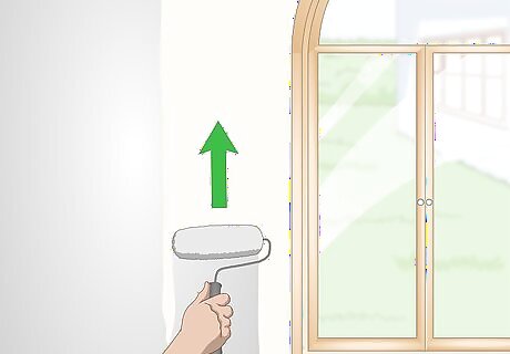 Use a nap roller to apply a base coat using angled, upwards strokes. Start applying the paint about 12 inches (30 cm) from the bottom of the wall and stop about 2–4 inches (5.1–10.2 cm) from the ceiling. Work in sections about 3 feet (0.91 m) wide and roll the paint onto the wall in smooth, even strokes for full coverage. Apply more paint to the roller as needed, but be sure to remove the excess paint by running the roller over the ridges in the paint tray.