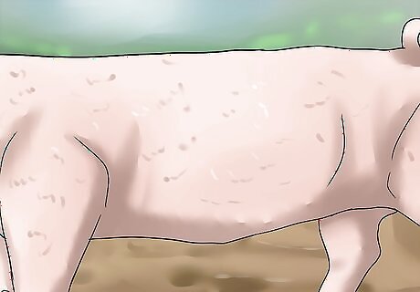 Observe the pig for signs of good health. It is crucial to purchase a hog that is in good health. Otherwise, your hog may not mature properly and you may have to spend money on getting the hog well. Before you purchase any hog, make sure that you observe it for signs of good health. If a hog shows any signs of illness, or if you notice that more than 10% of the producer's other hogs show signs of illness, then avoid purchasing a hog from this producer. Signs of illness may include coughing, sneezing, wheezing, discharge from the nose, scratching, and/or being underweight. Ask the producer to show you the hog's records, such as vaccinations and dewormers that have been administered to the hog. If the producer cannot or will not show you these records, then you may not want to buy from this producer.