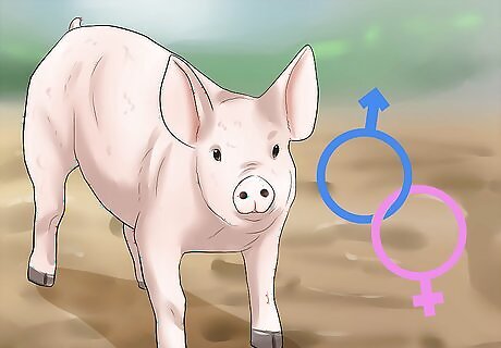 Consider the pig's sex. You will choose between a gilt and a barrow when you purchase a market hog. A gilt is a young female hog and a barrow is a young castrated male hog. Gilts may produce leaner meat than barrows, but barrows may gain weight faster than gilts. Consider your time frame and goals before you choose your hog's sex. For example, if you have a shorter time frame, then your may want to choose a barrow since it will likely gain weight faster than a gilt.