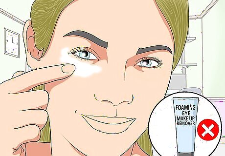 Avoid foam for eye makeup remover. You don’t want to use the same makeup remover on your eyes as you do on your face, because the skin around your eyes is very sensitive. Avoid foaming cleansers in particular, because they can easily get into your eyes and you'll likely have to scrub to get your makeup off.