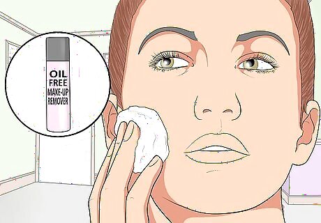 Try oil-free makeup remover. If you’re concerned about your makeup remover clogging up your pores, try an oil-free makeup remover. This type of makeup remover tends to be gentler. Keep in mind that you might need to wipe down your face two or three times with this type of remover. Oil-free makeup removers are good for all skin types, so feel free to use them no matter what type of skin you have.