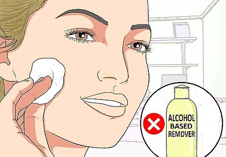 Avoid alcohol-based removers. Many makeup removers include alcohol as one of their main ingredients because it can easily break down the tough chemical composition of a lot of makeup. However, exposing your skin to alcohol-based removers on a regular basis can damage your skin over time, so avoid using them when you can.