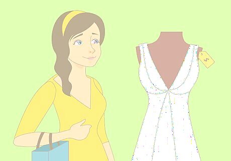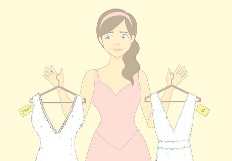 Shop at budget stores. High end wedding dress shops can charge tens of thousands of dollars for a dress you plan to use once, but there are budget stores out there that offer similarly styled dresses for a few hundred dollars. The same can be said for menswear. Unlike wedding dresses, a nice conservative suit for the groom can be worn a number of times and might be a good investment for life.