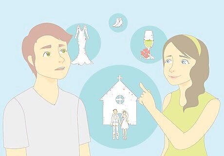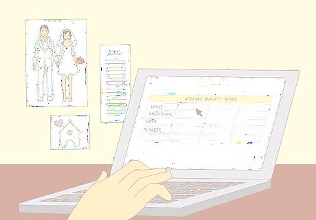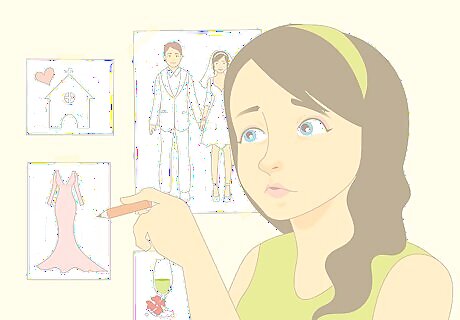 Create a vision. First decide what you want the wedding to look and feel like. You might not be able to have everything you want, but no matter how much you plan to spend you should develop an overall idea of the aesthetic of your wedding. Where will your wedding and reception be held? Will it be indoor or outside? At a church or another public venue? Do you want a big event inviting everyone you know, or an intimate service with a limited guest list of close loved ones? Do you want a spring wedding? Summer? Autumn? Winter? What's the style? Modern or retro? Traditional or daring? Rustic or urban? Will there be a theme?