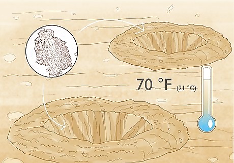Find a spot to plant your ranunculus where the soil drains well. Aside from planting your ranunculus in the sun, you should also keep the soil in mind when choosing a spot for your plant. Ranunculus grow well in well-drained soil and prefer rich, sandy ground. Avoid planting your ranunculus in areas where puddles remain long after rainfall, or if you know your soil is heavy clay. You can determine if your soil is predominantly clay by squeezing a handful of moist soil in your palm. If it clumps together, you likely have a clay-heavy soil. You can improve soil drainage by mixing your soil with a generous amount of substances such as plant fibers (bark or grass clippings) or well-rotted manure. These ‘soil extras’ will help your ranunculus to grow.