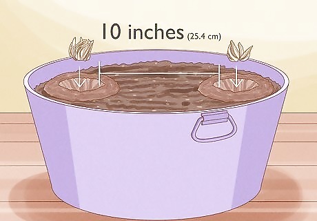 Consider planting your ranunculus in a container. To plant ranunculus tubers in pots, fill the container about three quarters full of soil. Place the tubers so that they are around 10 inches (25.4 cm) apart from each other and fill the container with soil so that the tubers are covered in about two inches of soil. Water the tubers to settle the soil. Remember container plants tend to dry out more easily than plants in the ground, so be mindful of watering over the growing season. Watering will be covered in Step 2 of Method 2. Keep in mind that ranunculus plants tend to make a large root system, so don’t crowd them too much in containers.
