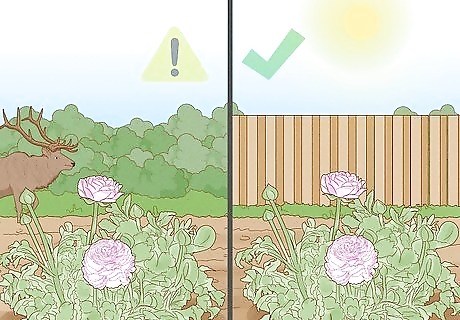 Keep animals away from the ranunculus, as the flowers are poisonous. All ranunculus plants are poisonous to livestock, and can also be harmful to pets and people. The plants have an unpleasant taste and cause blisters to form in the mouth. This generally means animals avoid eating them unless no other plants are available, which is good if you have deer in your area, but bad if you have pets. Consider planting the ranunculus in an area where your pets and livestock can’t reach them, such as a fenced off garden or in a pot (which is covered in Step 6, the previous step, of this section).