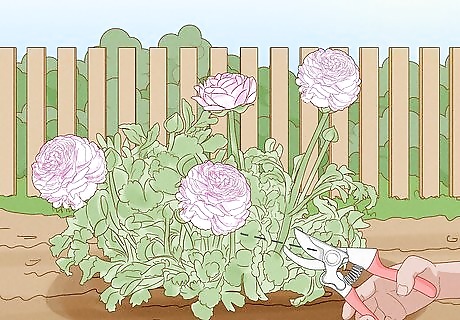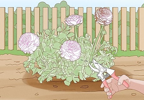 Preserve blooms that you cut. Ranunculus make a beautiful cut flower that generally remains healthy for awhile after being cut if measures are taken to preserve the cut. To preserve the life of cut ranunculus flowers, cut them early in the morning just as the buds are starting to open. A good clean cut using a sharp blade will help make the cut clean. Snip the stem at the base of the plant just about the crown and within the foliage. This avoids leaving exposed cut stems.