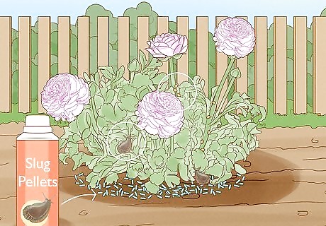 Defend your ranunculus against pests. Sadly, ranunculus can fall prey to pests like slugs and aphids. Luckily, there are measures you can take to make sure that these pests stay away. Combat slugs with slug pellets, which are sprinkled around your ranunculus. You can purchase these pellets at a garden supply store. A standard aphid spray or insecticidal soap should be applied if aphid attack occurs.