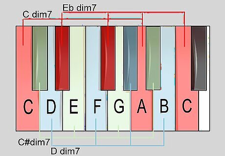 Diminished Chords: Like all chords, diminished chords and diminished 7th chords are formed from the intervals of the major scale, which is (Root, whole step, whole step, half step, whole step, whole step, whole step, half step.) For purposes of this example, let's use the “C” scale, which is: C, D, E, F, G, A, B, C.