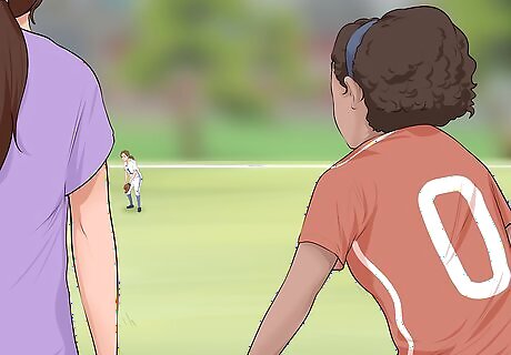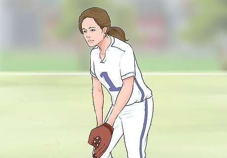 Stand in your position, knees bent and glove in grounding position or out in front of you when the batter is in the batter's box.