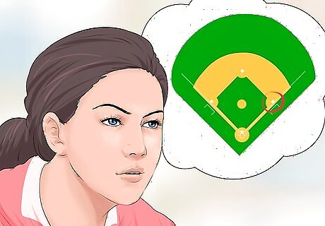 Watch out for bunts. The third baseman, pitcher, and you must run up to get the ball. If you get it, throw it to first where your second baseman should be covering. If the third baseman or pitcher gets it, duck.