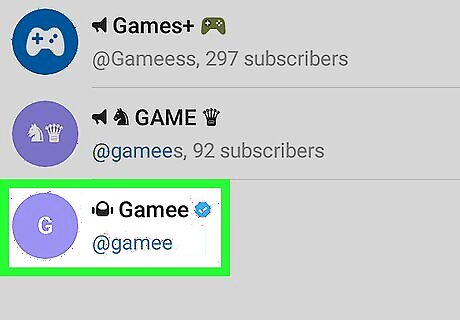 Tap Gamee. It's the green icon with a “G” inside. This opens the bot's information page.