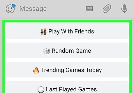 Select a game option. There are many games and ways they can be played. Tap Categories to view a list of available games by category. Tap Play With Friends to invite a friend to play with you. Tap Random Game to make Games choose a new game. Tap Trending Games Today to see which games are popular.