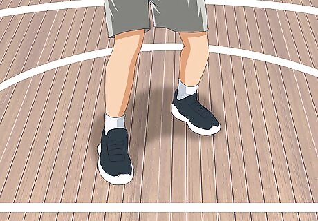 Position your feet for balance and mobility. You should keep your feet approximately shoulder length apart. Your shooting foot should be slightly in front of the other foot. Bend your knees slightly when you begin to shoot. It is important to keep a consistent stance. So that you can develop a feel for how to shoot the ball accurately, try to shoot it the same way every time. To do this, be conscious of how you position your feet.
