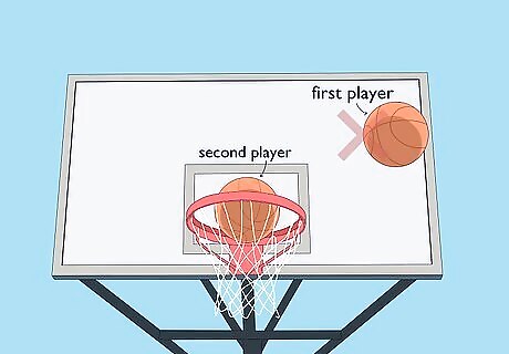 The second person in line should shoot from behind the foul line. After the first person in line has taken his shot, the second can advance to the foul line and take his own shot. If he misses, he should rebound as quickly as possible and take another shot from anywhere on the court. He should continue shooting until he scores.