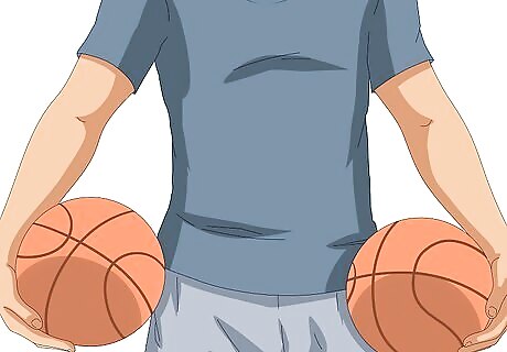 Get two basketballs. Unlike most variations of the game, knockout requires that you use two basketballs simultaneously. Purchase two regulation sized basketballs. Test to verify that the basketballs are still properly inflated. Generally, when you drop a properly inflated basketball, it should bounce back to about two thirds of height from which it was dropped. For a more exact measure of how inflated the ball should be, check the instructions that come with the ball. The instructions should specify how heavy the ball ought to be.