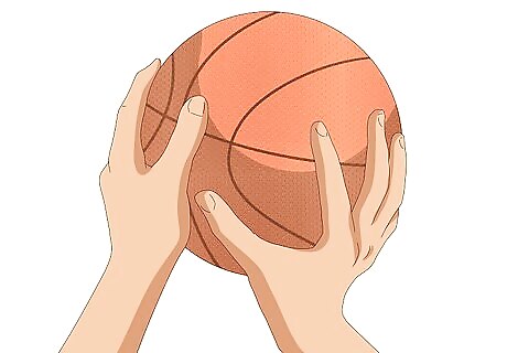 Grip the ball for stability. Spread your fingers far enough apart to balance the ball on your fingers. Position one hand on the center of the ball, with the air hole between your middle and index fingers. Place the other hand on the side of the ball, along the long seam of the ball. Keep some distance between your palm and the ball. The ball should rest on your fingertips. The hand on the side is only used to balance the ball. You should not apply any force to the ball from that hand. Remove this balance hand as you take your shot.