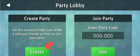 In the Create Party section, click on “Create”. To create a party, just click on "Create" and wait for the party code to generate.