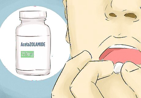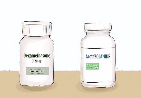Take a prescription medication to help alleviate your symptoms quickly. If you got a prescription for acetazolamide or dexamethasone, you can take either of these medications to help your body adjust to the elevation. By helping your body adjust to the elevation, these medications can help alleviate your symptoms and get over your altitude sickness more quickly.