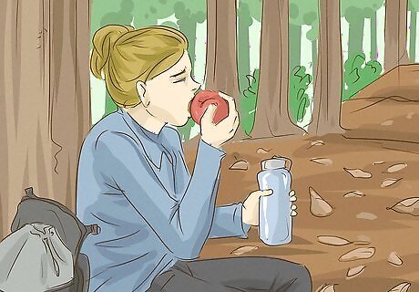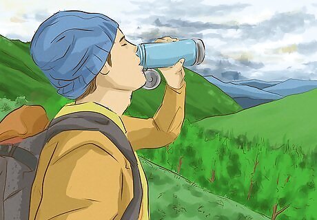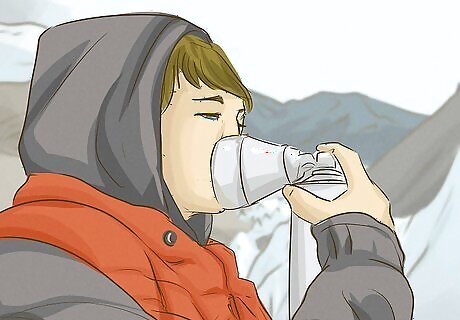 Eat and drink water frequently to avoid altitude sickness. Staying hydrated and well-nourished can help you ward off many of the unpleasant side effects of high altitude, such as dizziness and headaches. Try to eat at least 3 healthy meals per day, and keep snacks and a water bottle with you at all times until you are sure that your body has acclimated. Granola bars are a great option for a quick and easy snack to have on-hand.