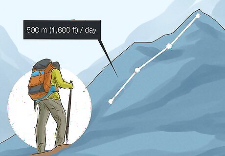 Ascend into higher altitudes slowly so your body can adjust. Once you are in a higher altitude, try to give your body time to acclimate to the increase in elevation. The likelihood that you will suffer from side effects increases with every increase in elevation. You can try to offset this, however, by spending a day or so at each high altitude elevation before ascending higher.