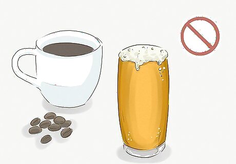 Avoid caffeine and alcohol for at least 1 day in advance. Drinking alcohol and caffeine in the days before you travel, as well as once you are traveling, can dehydrate your body, impact your ability to sleep well, and weaken your ability to fight any symptoms of altitude sickness. As a result, try to avoid consuming any caffeine or alcohol for at least 1 day before you travel, as well as while you are traveling. If you do choose to consume caffeine or alcohol while preparing for high altitude, make sure that you drink plenty of water to try to offset some of the negative effects.