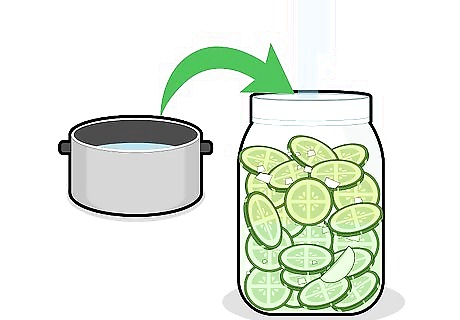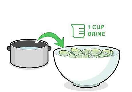 Pour the remaining brine over the cucumbers. Make sure the brine completely covers the cucumbers in the jars.. Put the covers on the jar, making sure they are tight. If you run out of brine, make a mixture of white vinegar and water to finish filling each jar.
