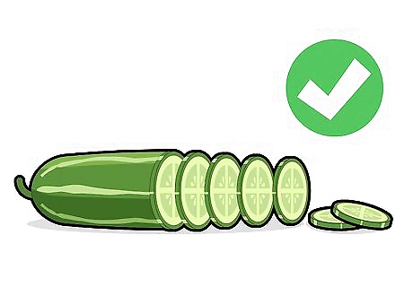 Slice the cucumbers. You can slice them anyway you want. If you want to infuse water with the frozen cucumbers, then slice them in a way that’s going to fit your water bottle or pitcher. If you are planning on putting the cucumbers into smoothies or making dip out of them, freeze the cucumbers whole. Put them in an airtight container to make sure they don't get freezer burn.