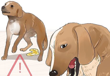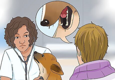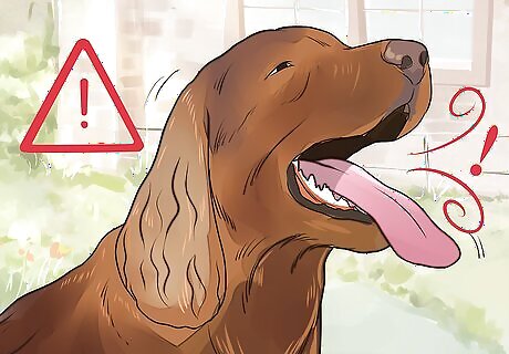 Look for vomiting and diarrhea. These are common symptoms of overheating which, when coupled with panting or heaving breathing, almost certainly indicate that your dog is overheating and may be approaching heat exhaustion. Other symptoms include bright blue or red gums and, in severe cases, collapsing or convulsing. As a result of the diarrhea and vomiting, overheated dogs often become dehydrated as well, which worsens their condition. Prevent this by giving your dog access to cool drinking water.
