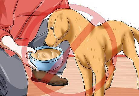 Avoid offering too many treats or giving into begging. Although it can be hard to say no to a dog looking for a treat, holding back is actually a better idea. By controlling your dog's level of food intake, you will help prevent it from becoming overweight and lower its chances of developing arthritis. Always make your dog's meal times exact and controlled to help keep your dog lean and healthy. Only feed your dog at meal times. Avoid using too many treats when training your dog. Treats used for training should be very small, being just large enough to give your dog a taste.