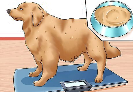 Learn how much to feed your dog. Dogs that are overweight are at a higher risk of developing arthritis. Carrying extra body weight will place extra stress on the joints and bones of your dog, possibly resulting in arthritis. Make sure you are feeding your dog a healthy amount of food and that its appropriate weight is maintained. The amount of food that you feed your dog will be based on its size and activity levels. Older dogs may not need to eat as much as younger dogs. Exactly how much you need to feed your dog will be unique to your specific dog. Talk with your veterinarian to learn more.