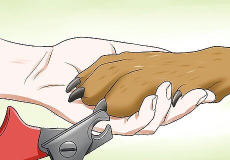 Keep your dog's nails trimmed. A simple way that you can help keep your dog arthritis free is to trim its nails regularly. Nails that are too long may cause your dog to walk differently than it normally would, subtly adding more stress to their joints. This stress can result in an increased risk of arthritis. Regularly trim your dog's nails to help keep its gait natural and prevent arthritis. You can trim your dog's nails at home with a pair of specially designed dog nail clippers. Your vet will help you trim your dog's nails if you are unsure of how to do so. Many professional pet grooming services will trim your dog's nails for you.