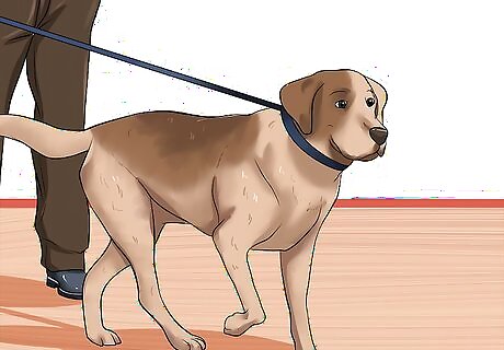 Provide plenty of exercise for your dog. Giving your dog regular exercise can help prevent arthritis from developing later in its life. Exercise can help keep your dog strong and avoid injuries that could turn into a case of arthritis. Regular activity can also help cut down on your dog's body weight, reducing stress on its joints. Always make sure you're going for plenty of walks and getting in some good play time to help keep arthritis at bay. Taking your dog for a swim can be a great low-impact form of exercise. Try going for regular walks with your dog. Playing fetch is a classic way for your dog to get in some good running. Always stop exercise if your dog looks tired, starts dragging or shows signs of discomfort or pain.