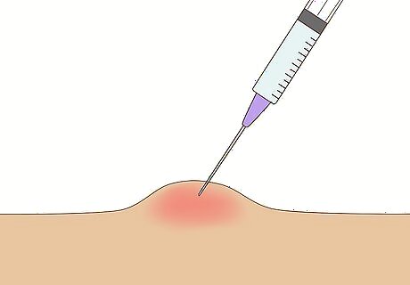 Ask your doctor about a cortisone injection. Cystic acne can be effectively treated by having a steroid, such as cortisone, injected directly into it. You could have some slight discoloration in the area as a side effect, but steroid injections have been shown to quickly improve cystic acne symptoms. Ask your doctor if you’re a good candidate for a cortisone injection.