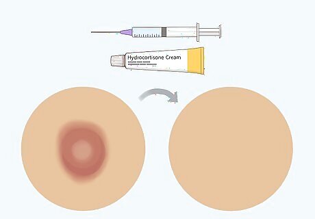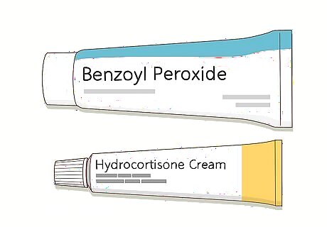 Use benzoyl peroxide and hydrocortisone cream for inflammation. While you can’t treat cystic acne with OTC acne products, you can help calm the bump until it heals and goes away. Once a day, dab some benzoyl peroxide on the skin over your cystic acne and let it dry. Then, apply a thin layer of hydrocortisone cream.