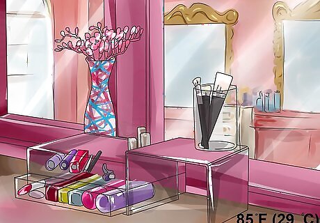 Store your cosmetics at the right temperature. It is important to store your cosmetics in a place where they will not get too hot — specifically, where they can remain at a temperature below 85°F (29°C). This is because cosmetics exposed to the heat for too long (such as those inadvertently left in a hot car) may have a reduced effectiveness of the preservative ingredients. In other words, reusing cosmetics that have been exposed to the heat for prolonged periods of time carries a higher risk of infection.