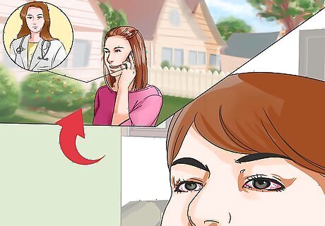 Know when to see a doctor. It is important to see your doctor if you notice any potential signs of an infection that may be related to your makeup use. Signs to be aware of include swelling of your eyelids, discharge from your eyes, or redness and inflammation of the whites of your eye(s). Also see your doctor if you develop an unusual rash or skin problems following makeup use. You may have a skin infection, or you may have an allergy to the cosmetic product.