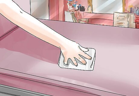 Clean the surrounding area. Since you will most likely be placing your makeup brushes and tools on the counter in between use, it is important that this area be clean as well in order to minimize your risk of infection. Use a cleaning product or an alcohol wipe at least once a week to keep the counters that you use for makeup application clean.