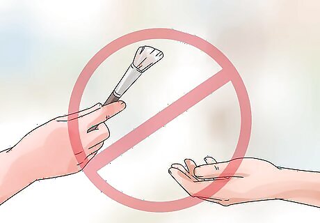 Do not share your cosmetics. One of the key ways to prevent infections caused by makeup is to not share your cosmetics with others (and to not borrow a friend's cosmetics). Sharing cosmetics introduces the other person's bacteria into your cosmetic containers as well as your own bacteria, thereby multiplying the risk of infection. It is especially important not to share cosmetics if you or the other person has (or has recently had) a pink eye infection. Pink eye (medically known as "conjunctivitis") is extremely contagious, and can be passed from one person to another via makeup tools.