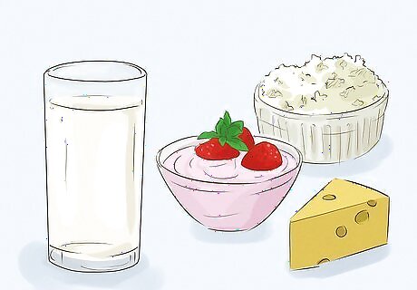 Eat a serving of low-fat dairy every day. Dairy contains vitamins and minerals that may help prevent myomas. Some studies suggest that dairy may help lower your risk of fibroids, though it might not work for everyone. Incorporate a serving of low-fat milk, yogurt, or cheese into your diet every day to help you get more dairy. For instance, eat yogurt for breakfast, drink a glass of milk for lunch, or add about 1 oz (28 g) of cheese to your meal at dinner.