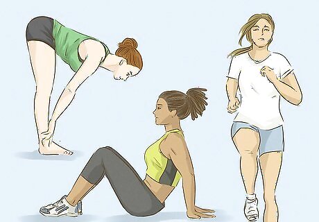 Exercise regularly. Women who exercise often may be less likely to develop uterine fibroids. This might be because exercise helps manage your hormone levels. While there's no guarantee it will help you, regular exercise could reduce your chances of getting fibroids. Choose an exercise that you enjoy so it’s easy to stick with it. Studies show that athletic women have a lower risk of developing fibroids than women who are relatively sedentary or have a high BMI (body mass index). You could go for a brisk walk, take a gym class, ride your bicycle, or join a recreational sports team. Talk to your doctor before starting a new exercise plan.