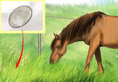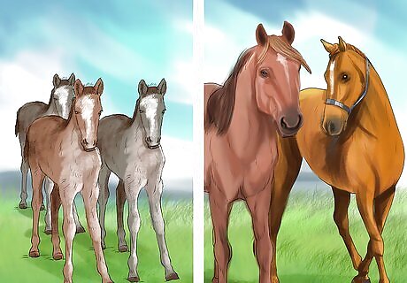Group horses together according to age. Foals have weaker immune systems than those of adult horses. Therefore, foals could get very sick if they graze with adults in a pasture area that has a heavy parasite load. If you have multiple horses, put them in groups according to age before turning them out to pasture. This will decrease the likelihood of foals getting exposed to heavy parasite loads. If a horse has internal parasites, the eggs can pass through the feces and hatch into larvae (developmental stage before adults) on the ground. While grazing, a horse could ingest these larvae, which would develop into adults in the intestines.