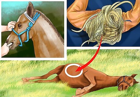 Use caution when deworming foals. Foals are especially susceptible to parasites called ascarids, which are thick, white worms that can grow up to 1 foot (30.5 cm) long. Ascarids can cause poor body condition, including a rough coat, colic (abdominal pain), and respiratory problems. To help a foal grow into a healthy adult, start deworming it at 4‒8 weeks of age and repeat every 30‒60 days, or according to your vet’s recommended deworming schedule. Do not give daily dewormers to your foal. Foals need some exposure to internal parasites so they can build up immunity to the parasites. A daily dewormer would kill the parasites before immunity could develop, possibly causing more severe reactions to parasites later in life.