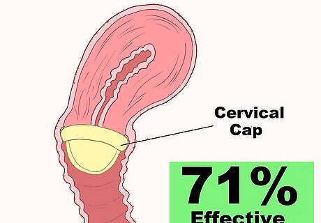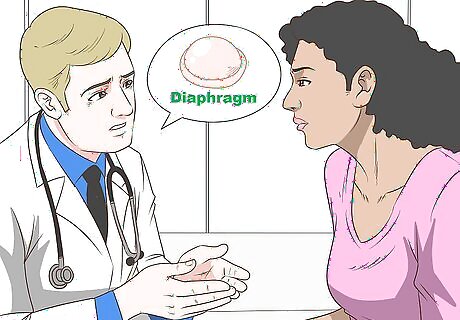 Get fitted for a diaphragm. A diaphragm is a small, curved latex barrier that a woman can insert into her vagina for up to 24 hours at a time. As long as it's left in the woman's vagina for at least 6 hours after intercourse, it's about 84% effective against pregnancy. With spermicide, it's 94% effective. Your doctor will determine the best size diaphragm for you and show you how to use it. They'll then provide you with a prescription for the diaphragm that you can take to the pharmacy or drug store. Consult your doctor if you gain or lose weight, as you may need to get refitted for your diaphragm. If you use the wrong size, it could be less effective.