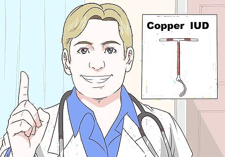 Ask your doctor for a copper IUD. Copper IUDs don't contain hormones, but they can help prevent pregnancy. This is because the copper causes inflammation in your uterus that kills sperm and eggs. They are 99% effective for preventing pregnancy. You can leave the copper IUD in place for up to 10 years. If you decide you want to get pregnant before then, you can have it removed early. A copper IUD usually does not have a negative impact on fertility once you get it removed. Although they don't carry typical side effects, some women experience cramping, bleeding between periods, or longer, heavier periods. Talk to your doctor if you're experiencing excessive cramping or bleeding.